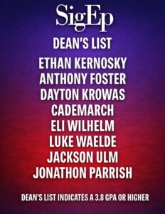 Academics remained a strong focus for the chapter this year. Illinois Nu earned a 3.47 fraternity GPA, the highest among Greek Life organizations, with multiple brothers receiving Dean’s List honors. These accomplishments reflect the discipline and consistency shown by the chapter both in and out of the classroom.